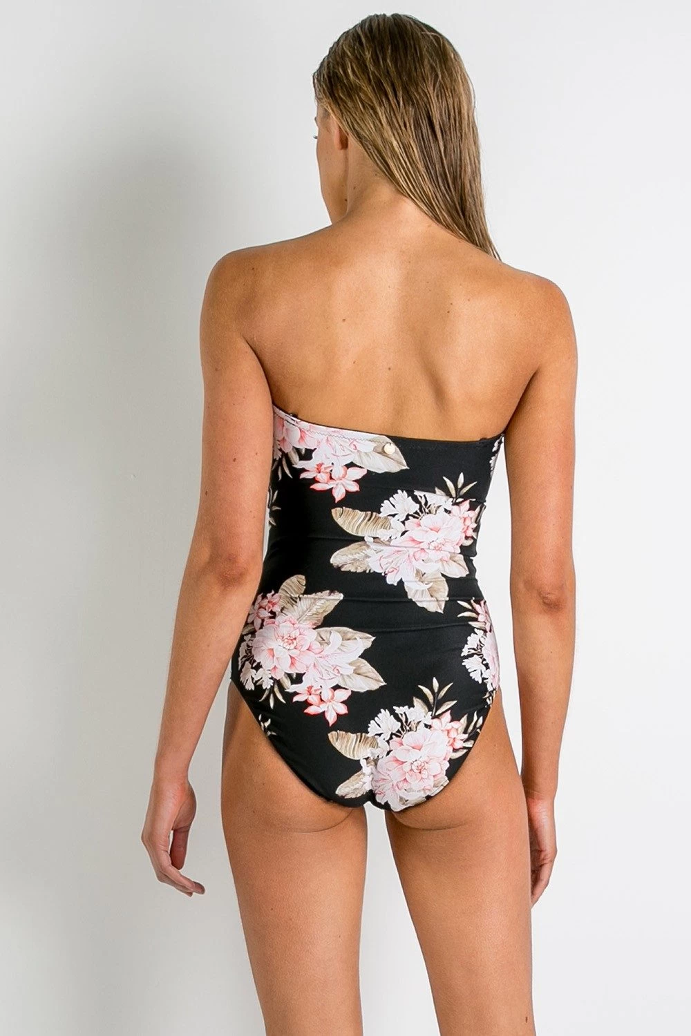 Powermesh fabric has been incorporated in the front of the suit to smooth and flatten the tummy and shape curves.