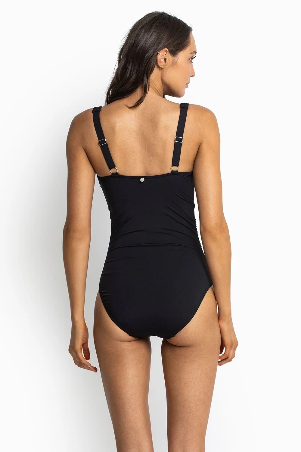Powermesh fabric has been incorporated in the front of the suit to smooth and flatten the tummy and shape curves.
