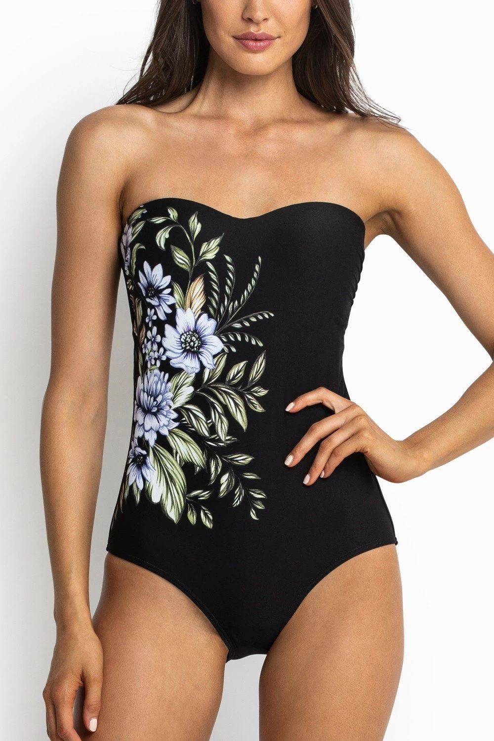 Powermesh fabric has been incorporated in the front of the suit to smooth and flatten the tummy and shape curves.