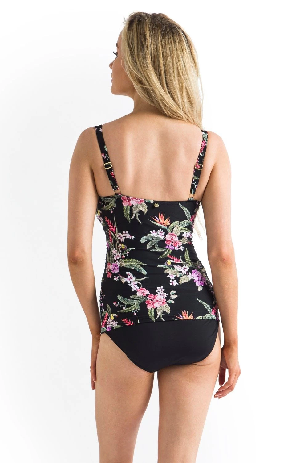 Powermesh fabric has been incorporated in the front of the suit to smooth and flatten the tummy and shape curves.