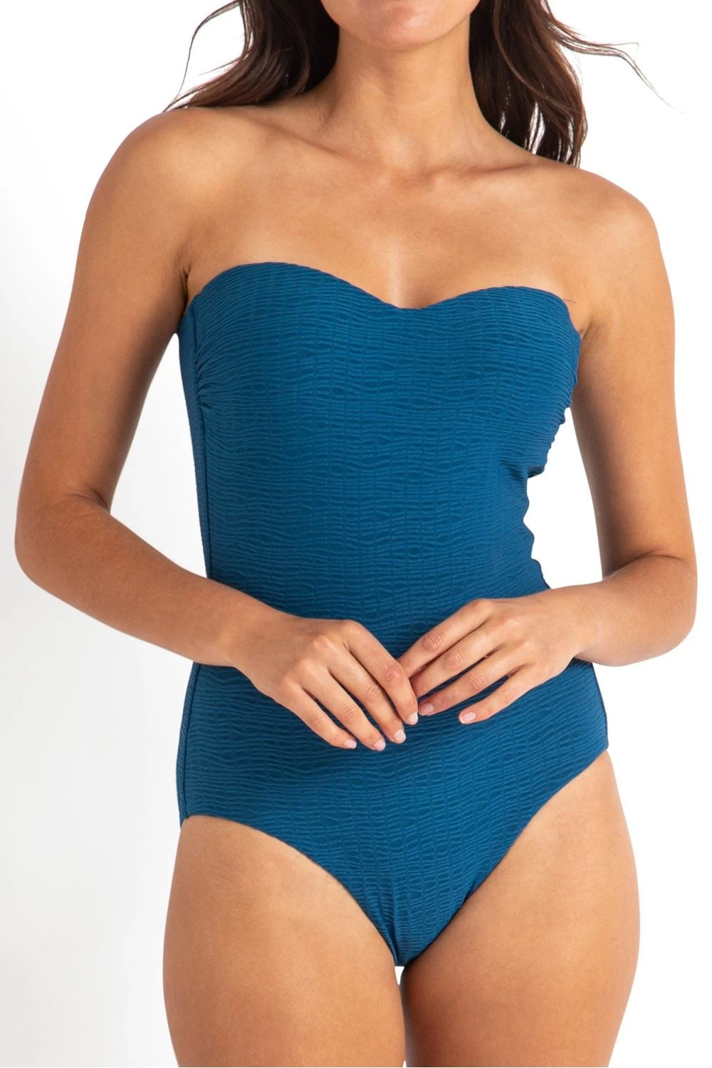 Powermesh fabric has been incorporated in the front of the suit to smooth and flatten the tummy and shape curves.