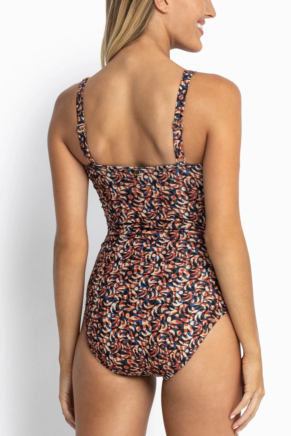 Powermesh fabric has been incorporated in the front of the suit to smooth and flatten the tummy and shape curves.